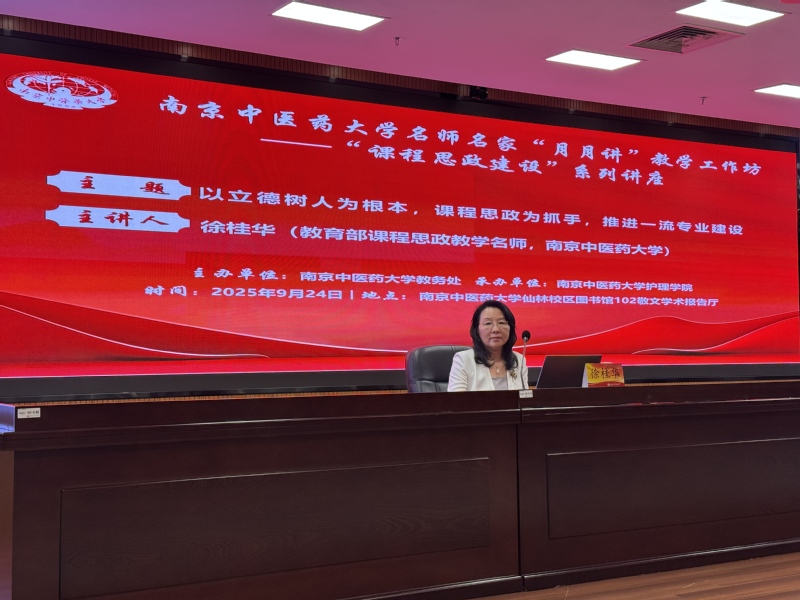 徐桂华以《以立德树人为根本,课程思政为抓手,推进一流专业建设》为题作报告。她从顶层设计、建章立制、推进举措等方面,介绍了学校在课程思政建设方面所开展的探索及成果,并以教育部课程思政示范课程、国家一流本科课程“中医临床护理学”为例,从内化课程思政理念、明确课程思政目标、建设课程思政案例库、重塑课程思政教学大纲、创新课程思政实践、评价课程思政成效等6个方面,详解介绍了课程思政设计建设路径与成效。