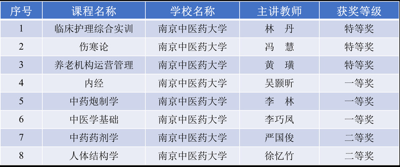 近日,江苏省第六届高校教师教学创新大赛获奖名单公布,我校护理学院林丹副教授团队、养老服务与管理学院黄璜副教授团队、中医学院冯慧讲师团队获特等奖;中医学院吴颢昕教授团队、药学院李林教授团队、中医学院新教师李巧凤获一等奖;药学院严国俊教授团队、医学院新教师徐忆竹获二等奖。六届教创赛,我校特等奖数从第二届1项,到第五届2项,再到第六届3项,实现了此项赛事的历史最好成绩。本届教创赛我校特等奖获奖数和总获奖数均位居省高水平大学(Ⅰ类)第5位。